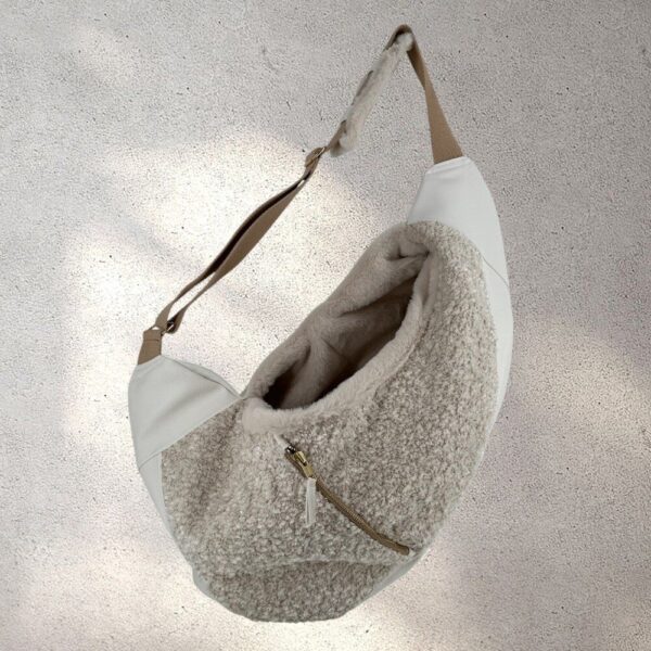 Deze prachtige, handgemaakte draagzak uit de nieuwe wintercollectie is een zachte en comfortabele draagtas. Ideaal voor hondenliefhebbers die graag hun handen vrij hebben tijdens het wandelen.